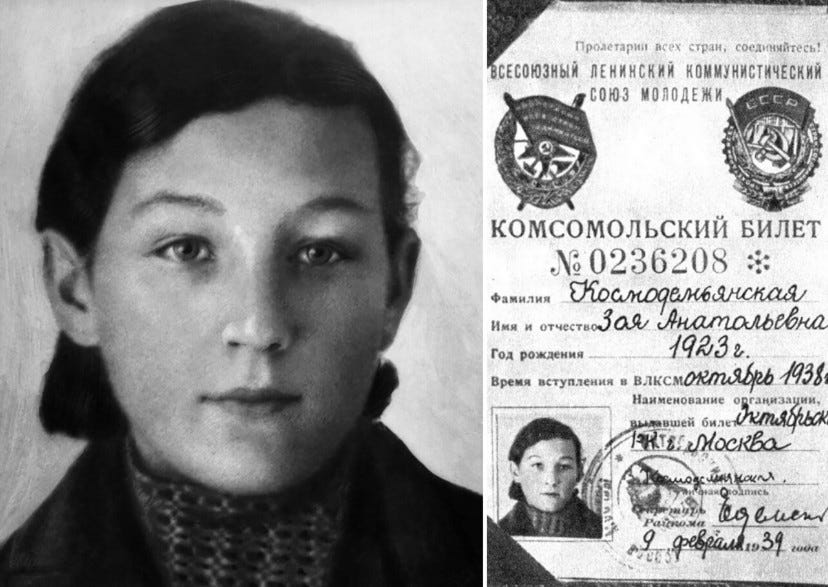 Her namesake was a partisan executed by the Nazis after they caught her burning houses and barns in a village they had occupied. As she was led to the gallows, 18-year-old Zoya Kosmodemyanskaya reportedly taunted the SS men who had captured her, shouting, “You’ll hang me now, but I am not alone. There are two hundred million of us. You can’t hang us all.”